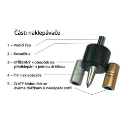 2 - Jemne zatĺkajte naklepávač do otvoru pomocou kúska dreva položeného na tŕň alebo kovadlinu. Ak by ste udierali priamo na nasadený klobúk alebo odkrytý čap, mohlo by dôjsť k poškodeniu povrchu kovadliny alebo čapu!
